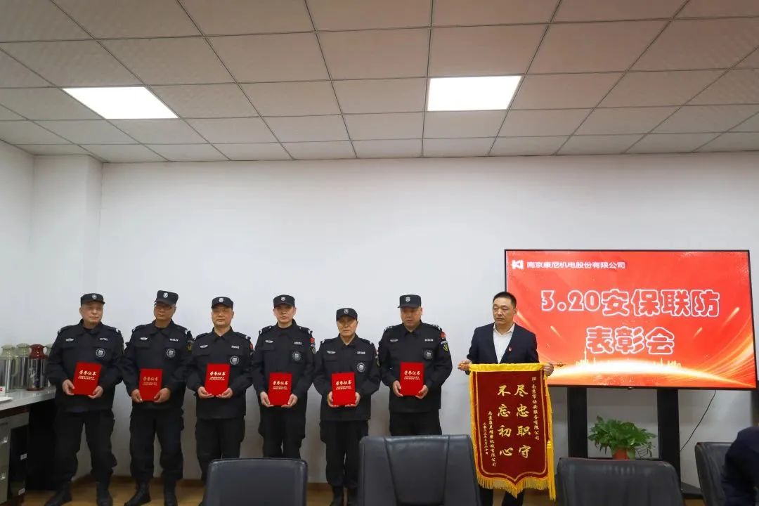 “愛崗敬業(yè)、智勇雙全……南京保安好樣的!”3月29日,南京市保安服務(wù)有限公司駐康尼機(jī)電股份有限公司保安員魏健、王俊東、胡國旗、袁書進(jìn)、陳邦春、李雷因勇擒竊賊受到了客戶單位的表彰,康尼集團(tuán)各分公司綜合管理部及各外包服務(wù)公司負(fù)責(zé)人參加會議,南京市保安服務(wù)有限公司黨支部書記、分管該項目的副總經(jīng)理及項目所屬部門負(fù)責(zé)人應(yīng)邀參加表彰會。